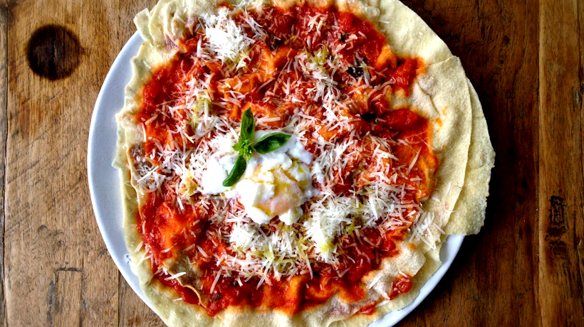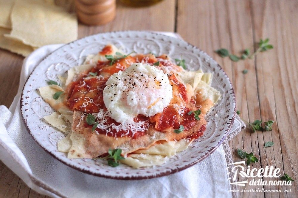 . LAGANE E CECI Basilicata. In questo piatto molto particolare le fette croccanti del pane Carasau pane tipico sardo sono alternate con strati di sugo di pomodoro e formaggio pecorino. Alla fine si mette un uovo cotto in brodo di pecora pane frattau.
